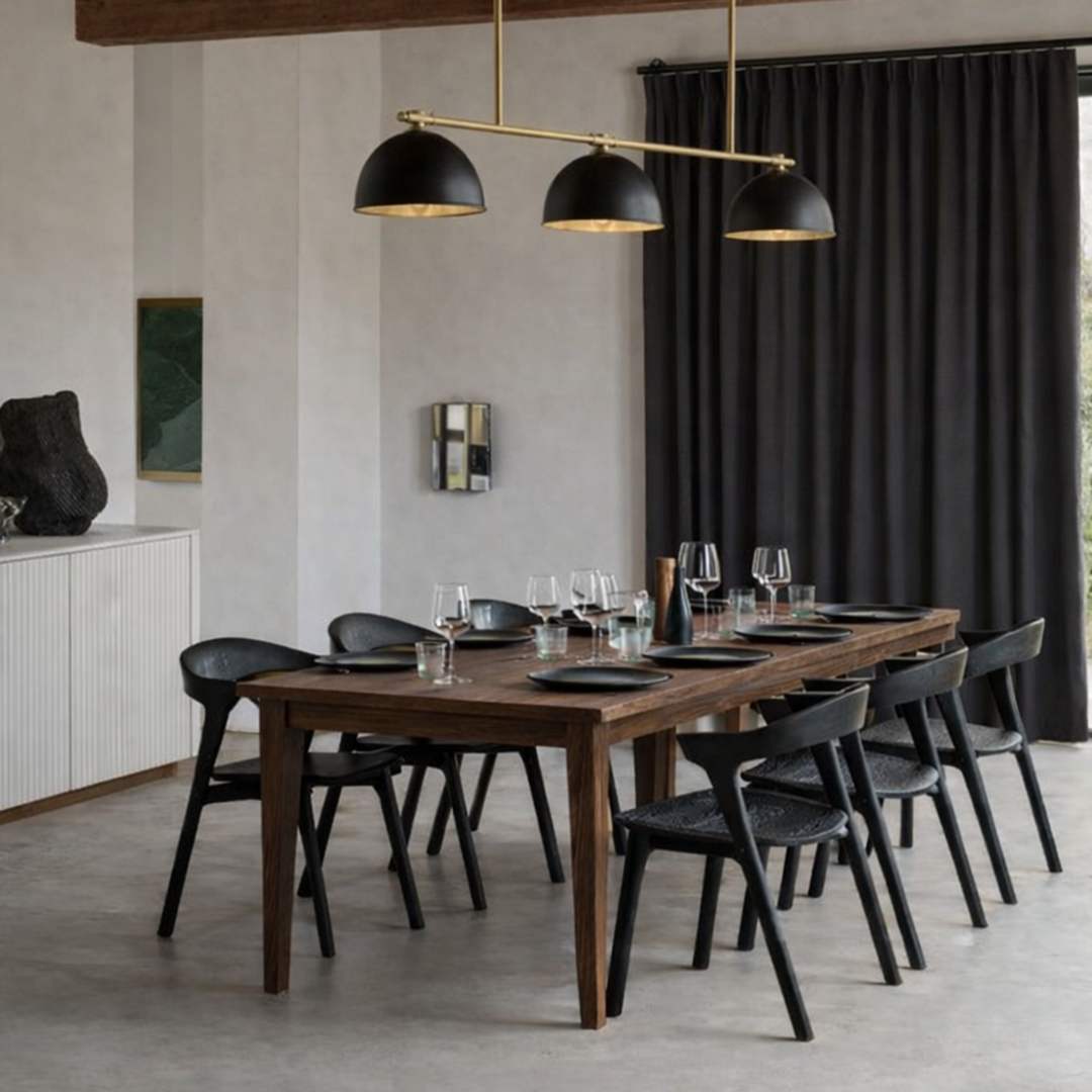 Les tables en noyer noir sont traitées à l’huile pour faire ressortir la richesse et la profondeur du grain.