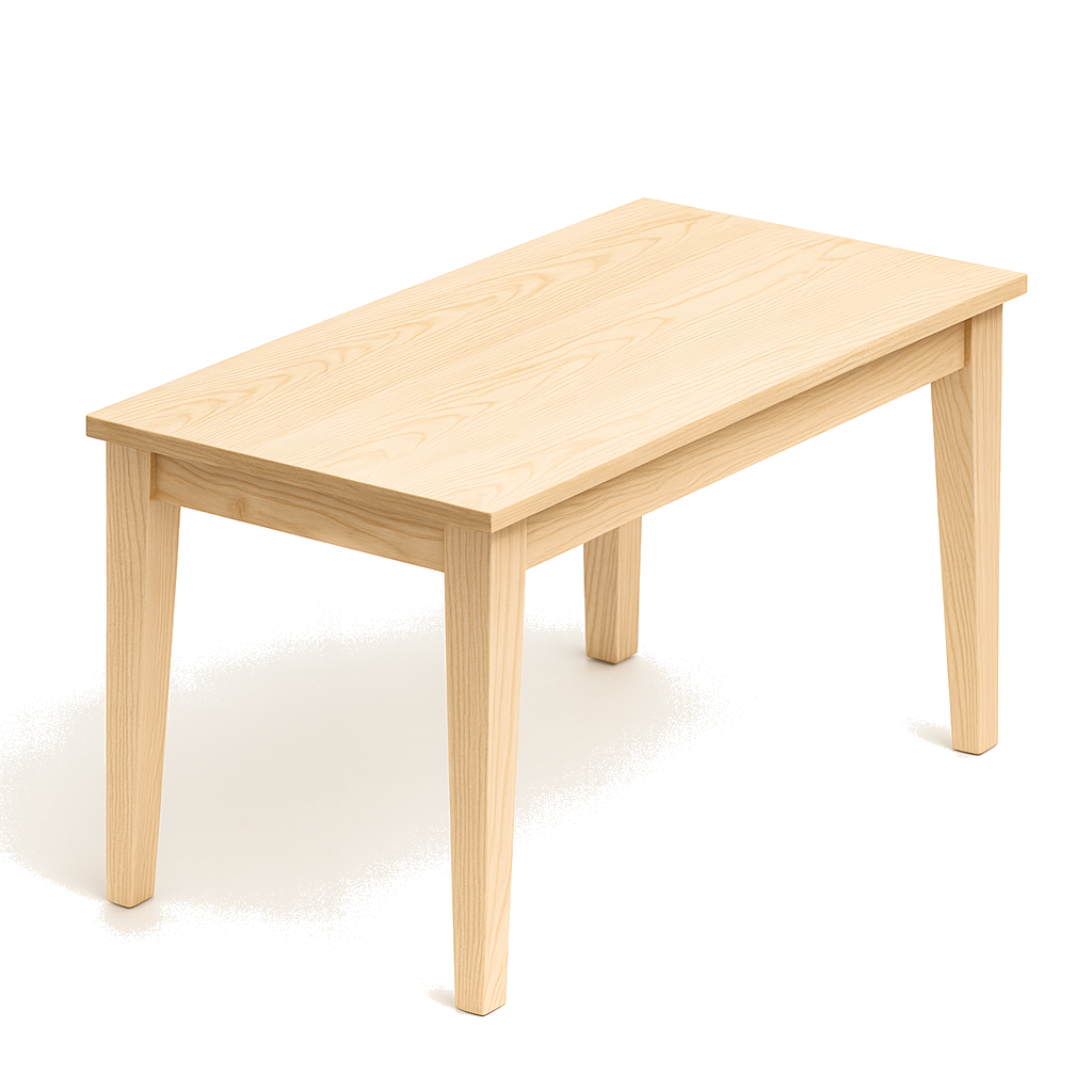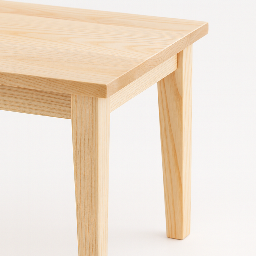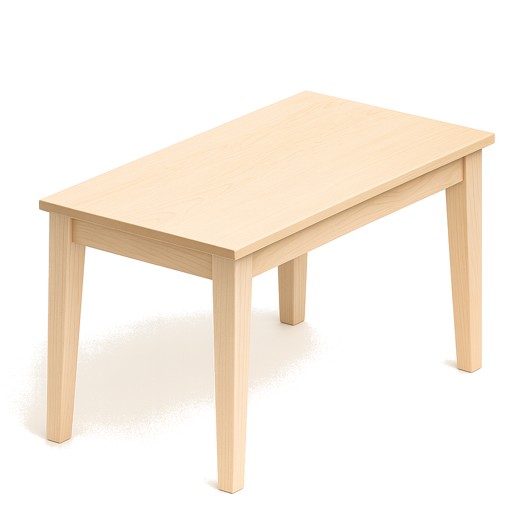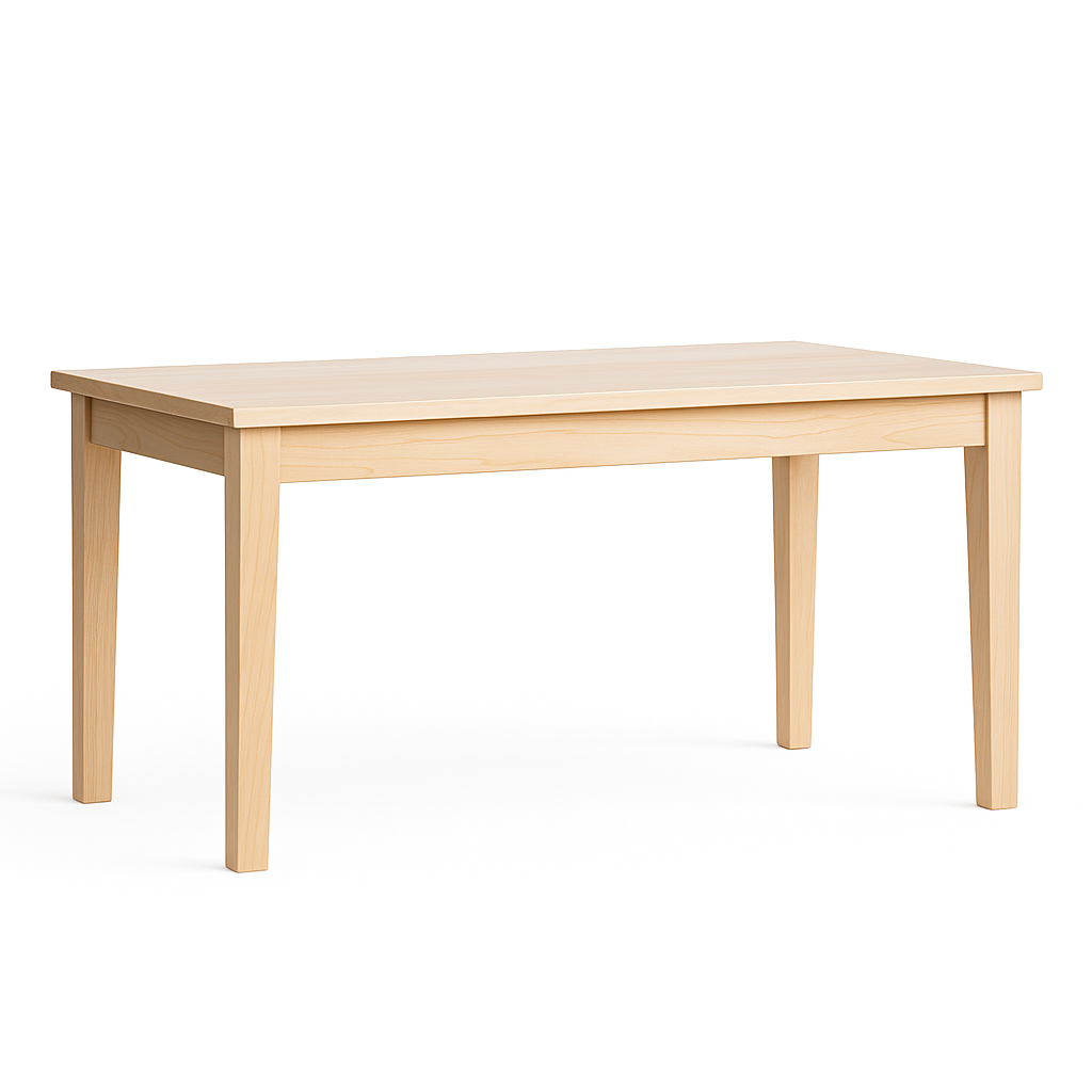Les tables en érable et en frêne sont protégées avec un vernis légèrement satiné qui conserve la teinte naturelle du bois.